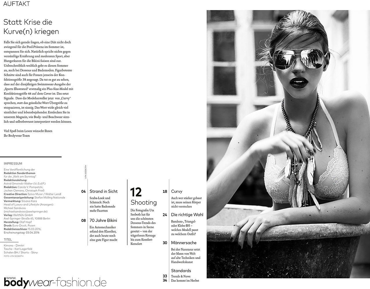 WELT AM SONNTAG BODYWEAR. Modefotografie für Magazinbeileger der Welt am Sonntag